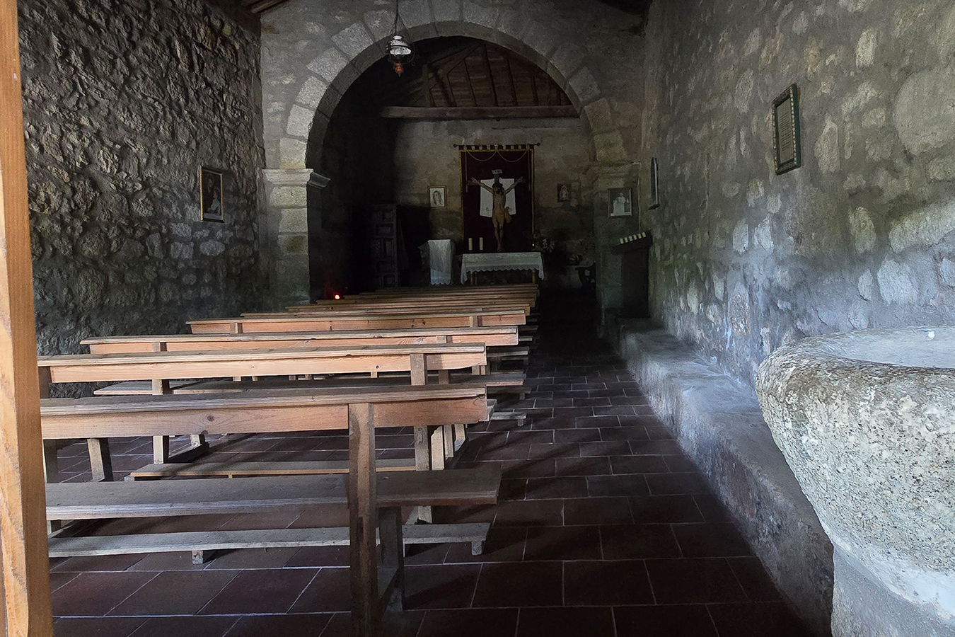 En su interior cuenta con un Retablo del siglo XVI aproximadamente originalmente recubierto con pan de oro. Entradas con arcos de medio punto. Alrededor de las fachadas sur y oeste está lo que se conoce como «El Portal»; una zona considerablemente amplia delimitada por una pared, muro de contención de piedras de cantería