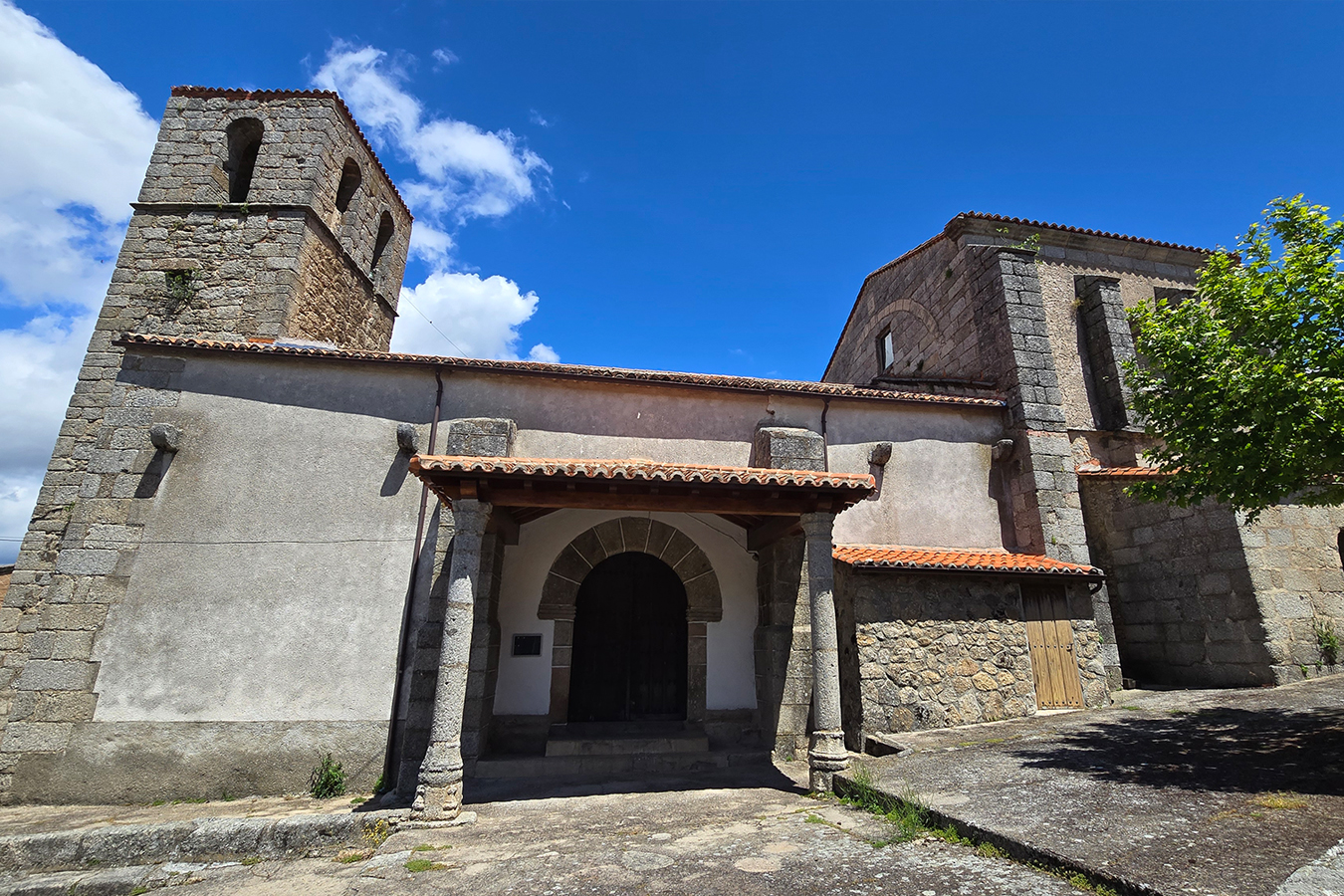 Templo de grandes proporciones, de planta basilical con una sola nave, muros de mampostería de granito. Se cree que su construcción se produce entre los siglos XIII y XIV aunque ha sido reformada con posteridad.