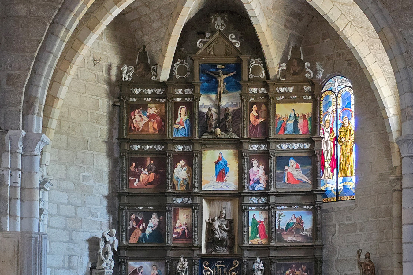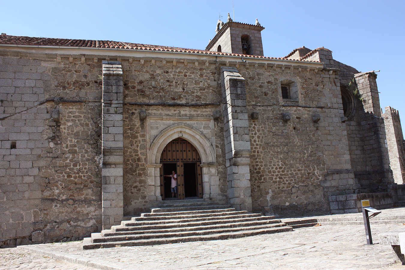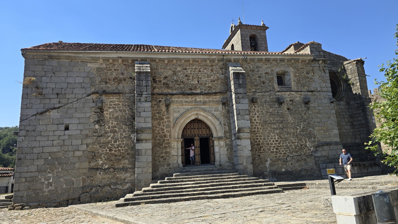 La iglesia fue construida en granito en el siglo XIII es de estilo románico de transición al gótico. esta combinación de estilos se puede apreciar en el ábside poligonal, en la torre y los ventanales que pertenecen al románico, del gótico mantiene la fachada de poniente. La torre es posterior al cuerpo de la iglesia, siendo del siglo XVI. De su interior cabe destacar el retablo de la capilla mayor de origen renacentista y que data de 1552, también se pueden apreciar las imágenes de San Jorge, del Cristo de las Batallas, San Blas y un fresco de San Cristóbal. Se encuentra dentro de las murallas junto con el castillo