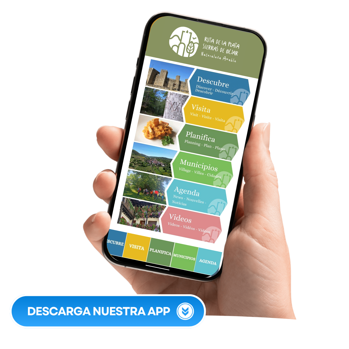 Puedes instalarte nuestra aplicación de Turismo Ruta de la Plata donde podrás consultar información sobre los 21 municipios que integran la mancomunidad, los recursos naturales y turísticos de los que dispone, rutas que puedes realizar, los lugares dónde puedes comer, alojarte o dónde poder comprar. Puedes planificar tu viaje con antelación para que todo salga perfecto y conocer los destinos y lugares más destacados. Para ello, te invitamos a que te descargues nuestra APP que está disponible tanto en IOS como en ANDROID